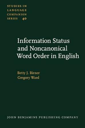 Read Information Status and Noncanonical Word Order in English (Studies in Language Companion Series) Doc Internet Archive